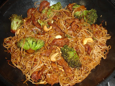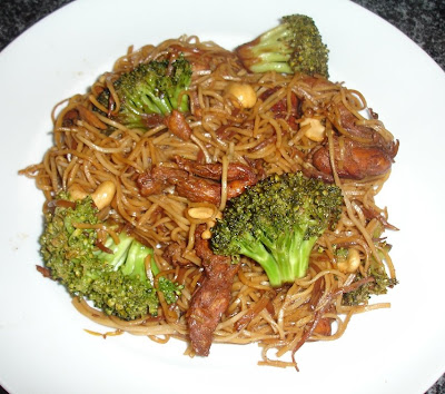 Cortar o perú às tiras e fritar na margarina, na wok, até ficar dourado.