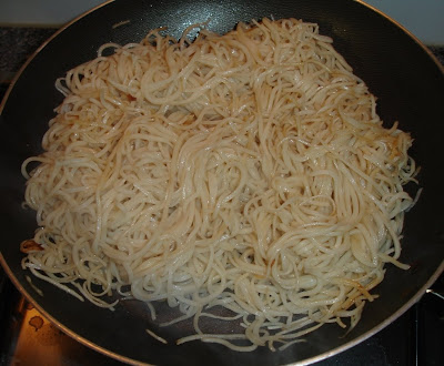 Escorrer bem e fritar num pouco de óleo, para ficar crocante.