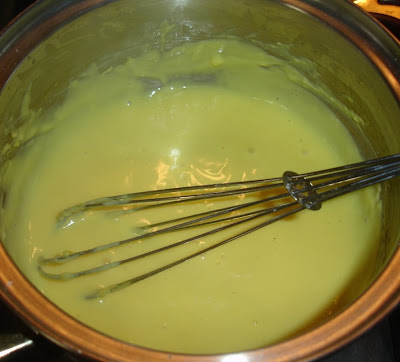 Levar a manteiga ao lume e quando estiver derretida juntar a farinha custarda.