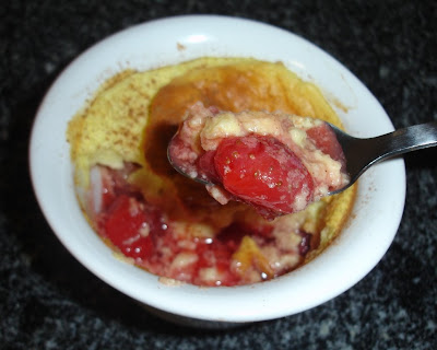 Distribuir os morangos por 4 taças de ir ao forno e por cima colocar o creme.